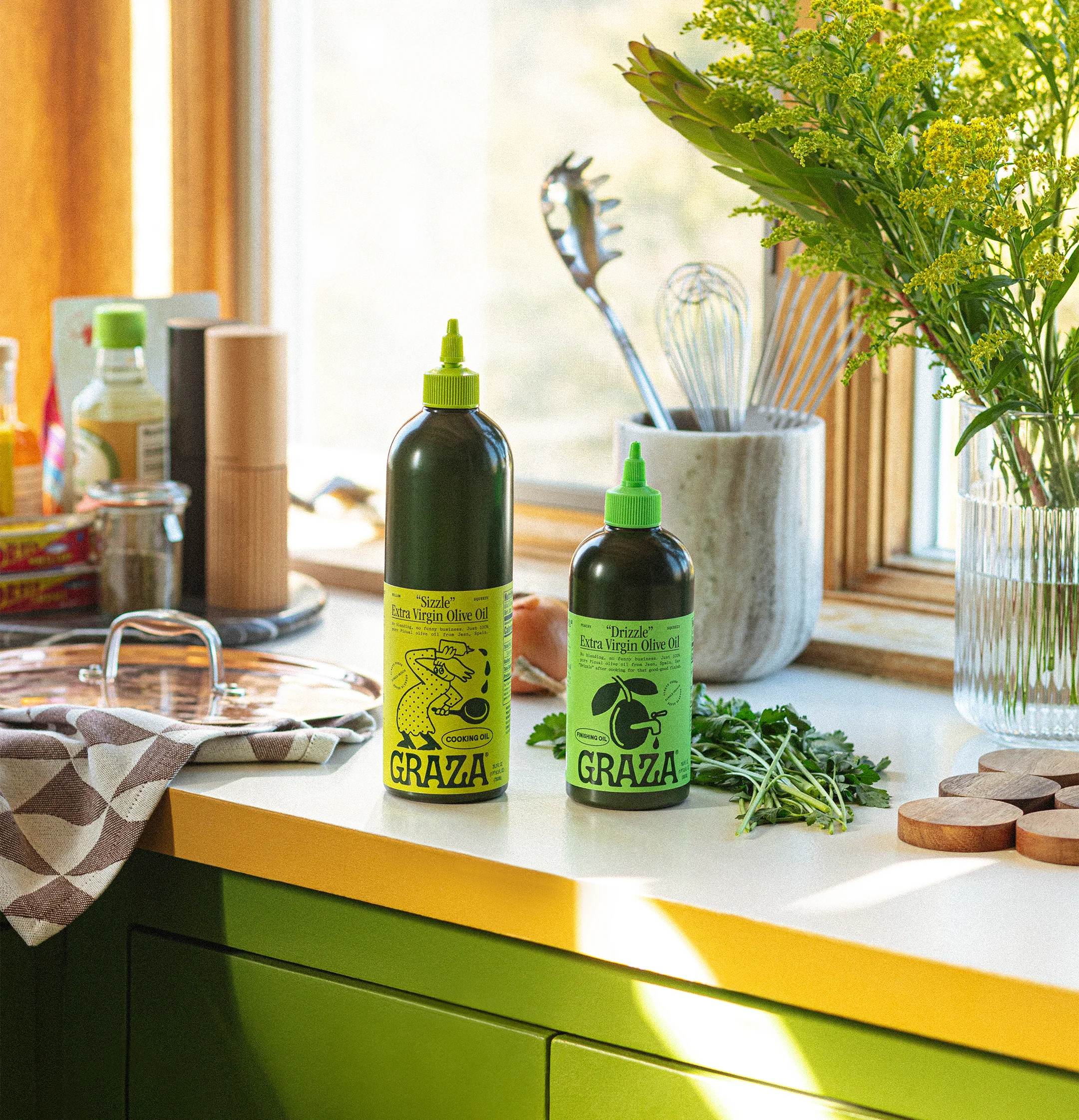 The Duo Gift Set: "Sizzle" cooking EVOO and "Drizzle" finishing EVOO together in one pristine (and adorable) ready-to-gift box. Consider this us doing the gift-wrapping for you. Get it for your grandma, uncle, friend, neighbor, or anyone who cooks.
